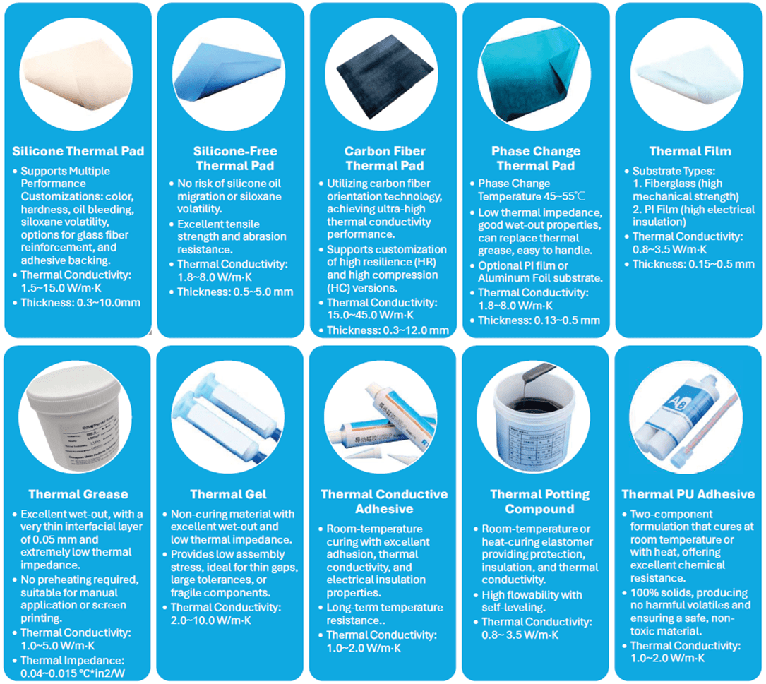 - Superb Thermal Conductivity: Whether you choose silicone, silicone-free, carbon fiber, or phase change materials, our thermal TIM deliver exceptional thermal conductivity, with options reaching up to 45 W/m·K—perfect for high-performance electronics!